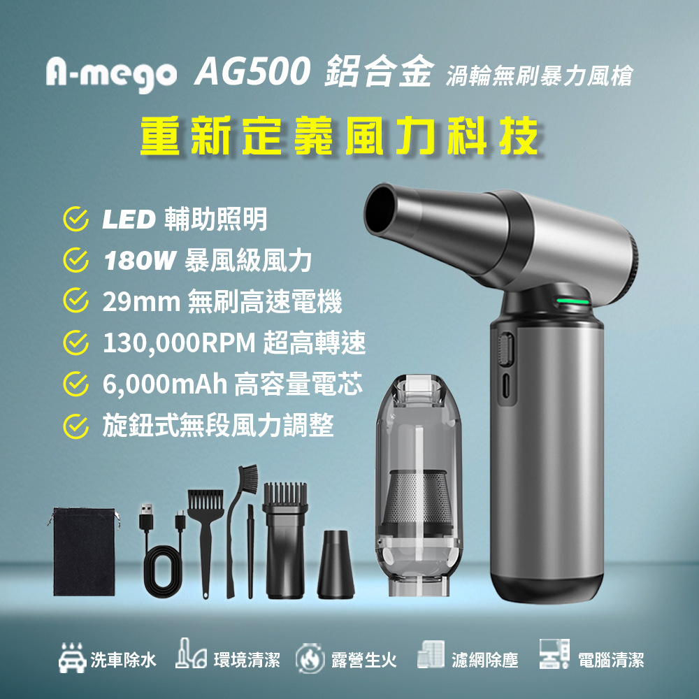 暴風等級 A-mego AG500 鋁合金無刷渦輪暴力風槍 吹塵//吹水//清潔 一機搞定