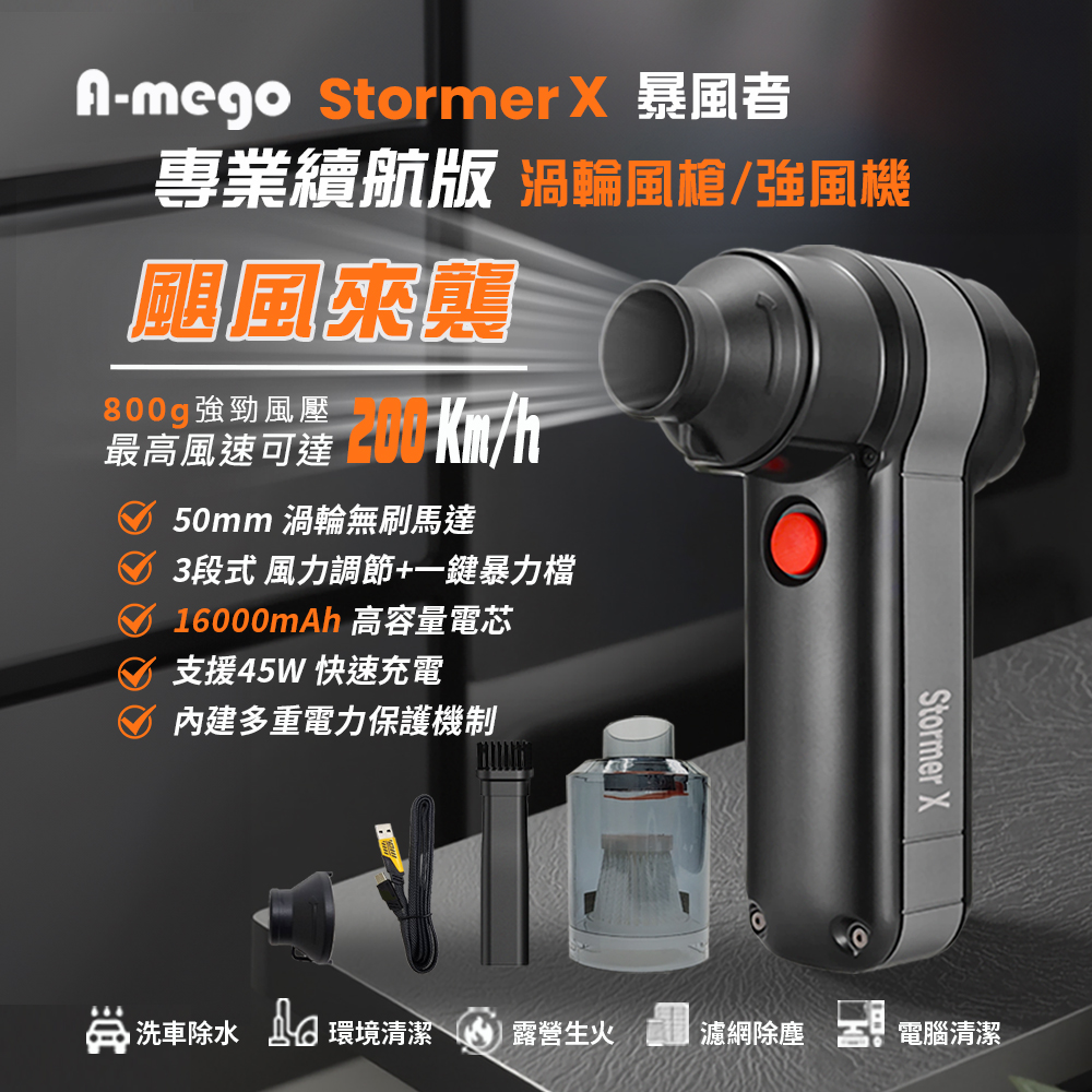< 極限專賣・好評推薦 > 感謝《輕鬆玩》熱情開箱實測! 【A-mego Stormer X】800g 渦輪暴力風槍 / 強風機 重新定義風力科技,體驗極致風壓的全面進化!