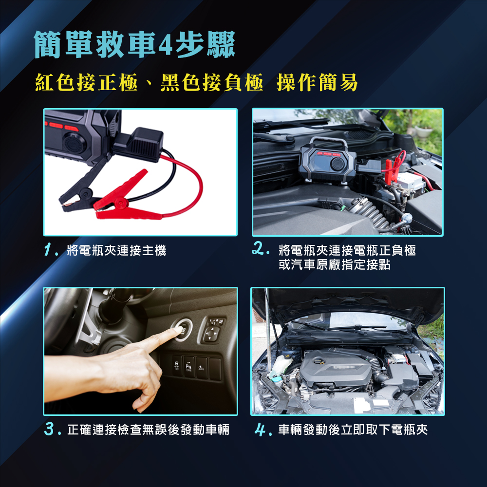 ➤ 支援 12V 汽油 3500cc/柴油 2200cc 以下車輛,關鍵時刻即刻救援