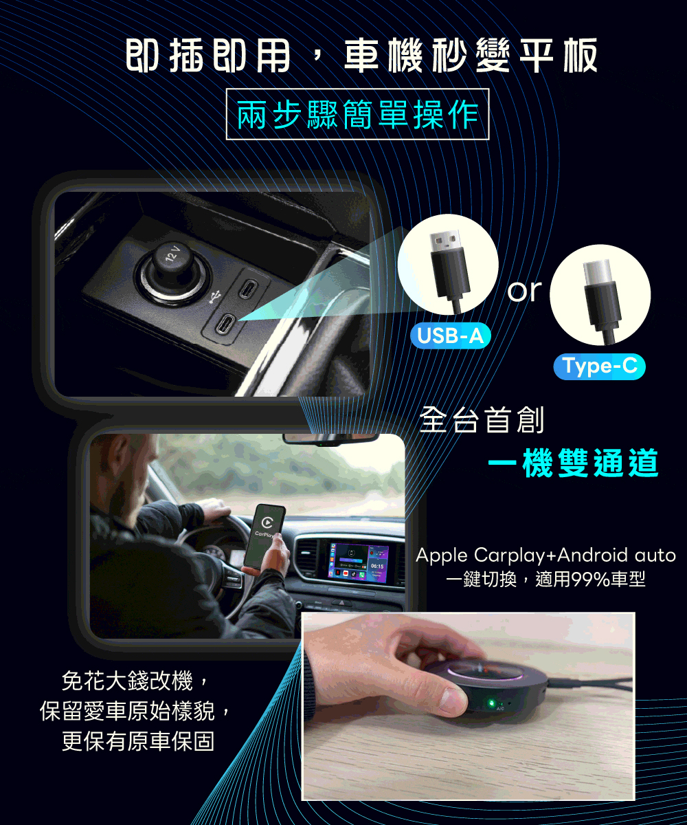 ★ 支援 Apple CarPlay / Android Auto 有線連接|導航、音樂、通話更方便